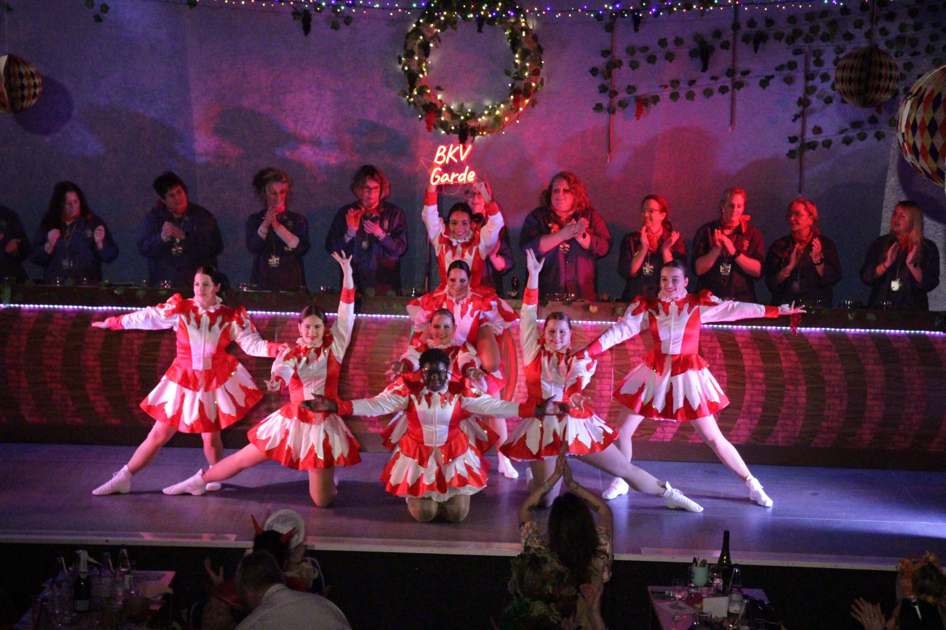 „Die 180 Besucherinnen der BKV-Damensitzung erlebten im Kulturzentrum eine herausragende Show mit Top-Rednern, Tanzeinlagen und Kokolores. Sitzungspräsidentin Manuela Beck führte souverän durchs Programm und leitete die Sitzung mit dem Klassiker-Zwiegespräch von Michaela Weik und Margit Braun als Putzfrauen ein. Sekretär Ulrich Schumacher glossierte gekonnt das politische Geschehen in nah und fern. Das Tanzmariechen-Paar Miriam Rappolt und Chantal Brown holte alle Frauen von ihren Sitzen – wie auch die neuformierte BKV-Garde. Ehrenpräsident Michael Choquet begeisterte in seinem Vortrag als „Wein-Influencer“. Weitere Höhepunkte in der 1. Halbzeit waren die Vorträge von Corinna Brück (Leddekepp) und von Boris Feldmann („Eiskalte Brüder“), die beide den Saal zum überschäumen brachten!